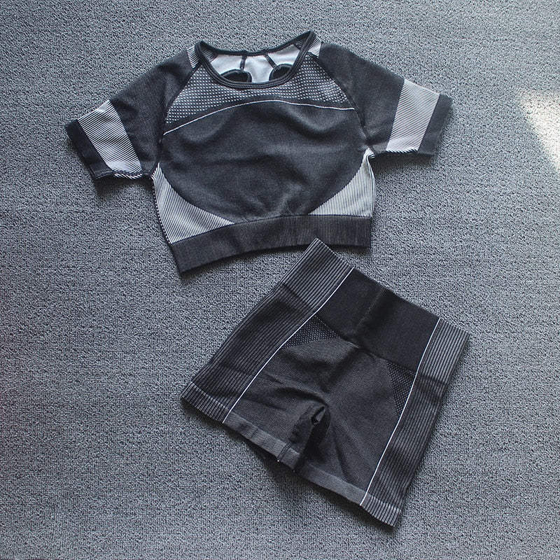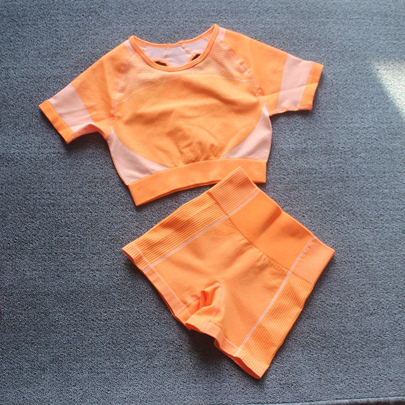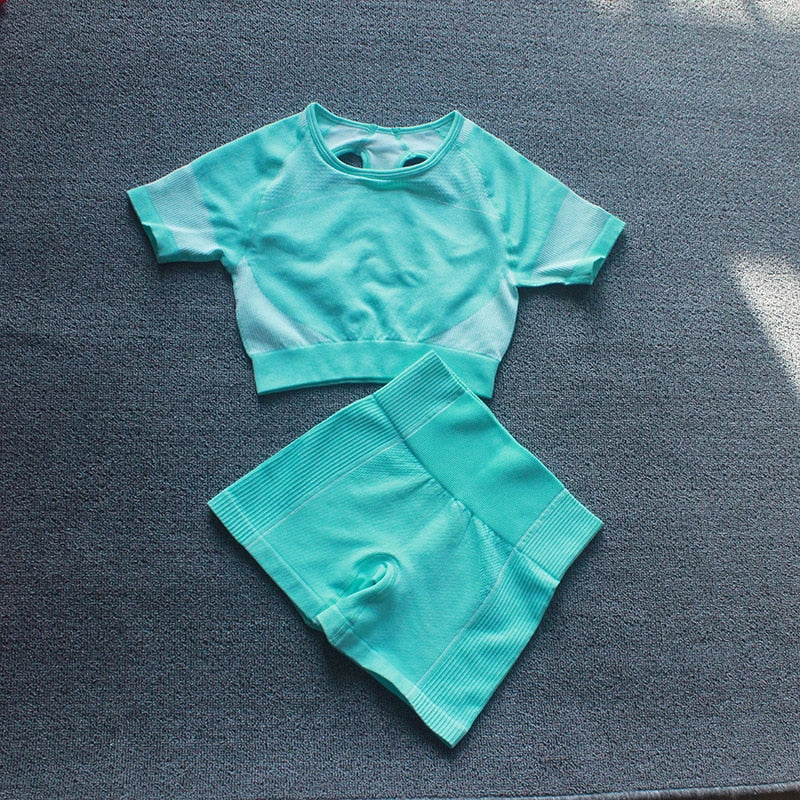 Summer Seamless Yoga Set Woman Workout Sport GYM Crop Top Sport Shorts Tank Suit Summer Outfit Fitness Gym Clothes