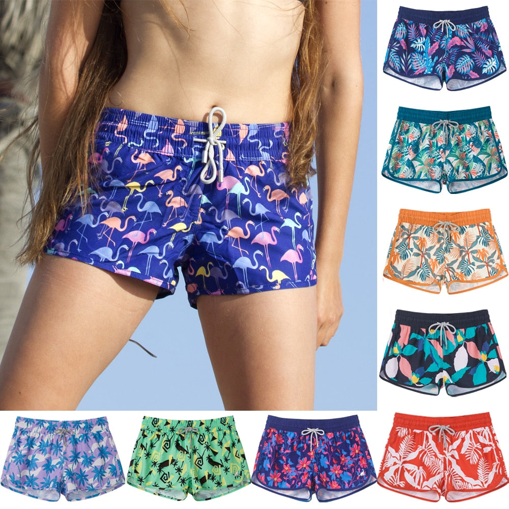 Surfcuz Women Summer Beach Board Shorts Casual Print Swimming Trunk Quick Dry Female Surfing Sports Swim Shorts Lady Boardshorts